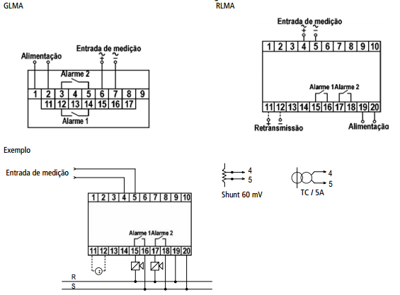 Amperímetros microprocessados com alarme Tipo: GLMA e RLMA