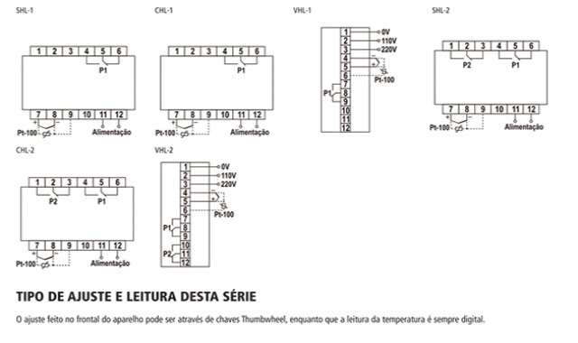 Diagrama(s) de ligação do Controladores de temperatura analógicos com indicação digital Tipo: SHL, CHL e VHL