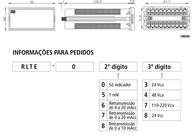 Dimensões: Indicador de temperatura microprocessado econômico Tipo: RLTE