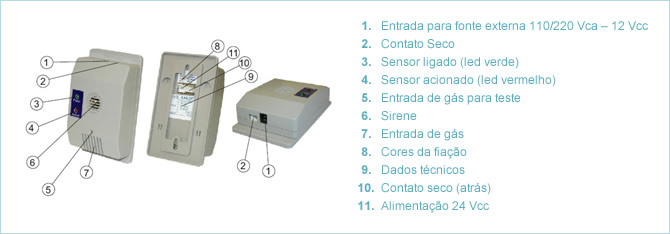 • Detecta vazamento de gás de butijão (GLP) ou gás de rua.
